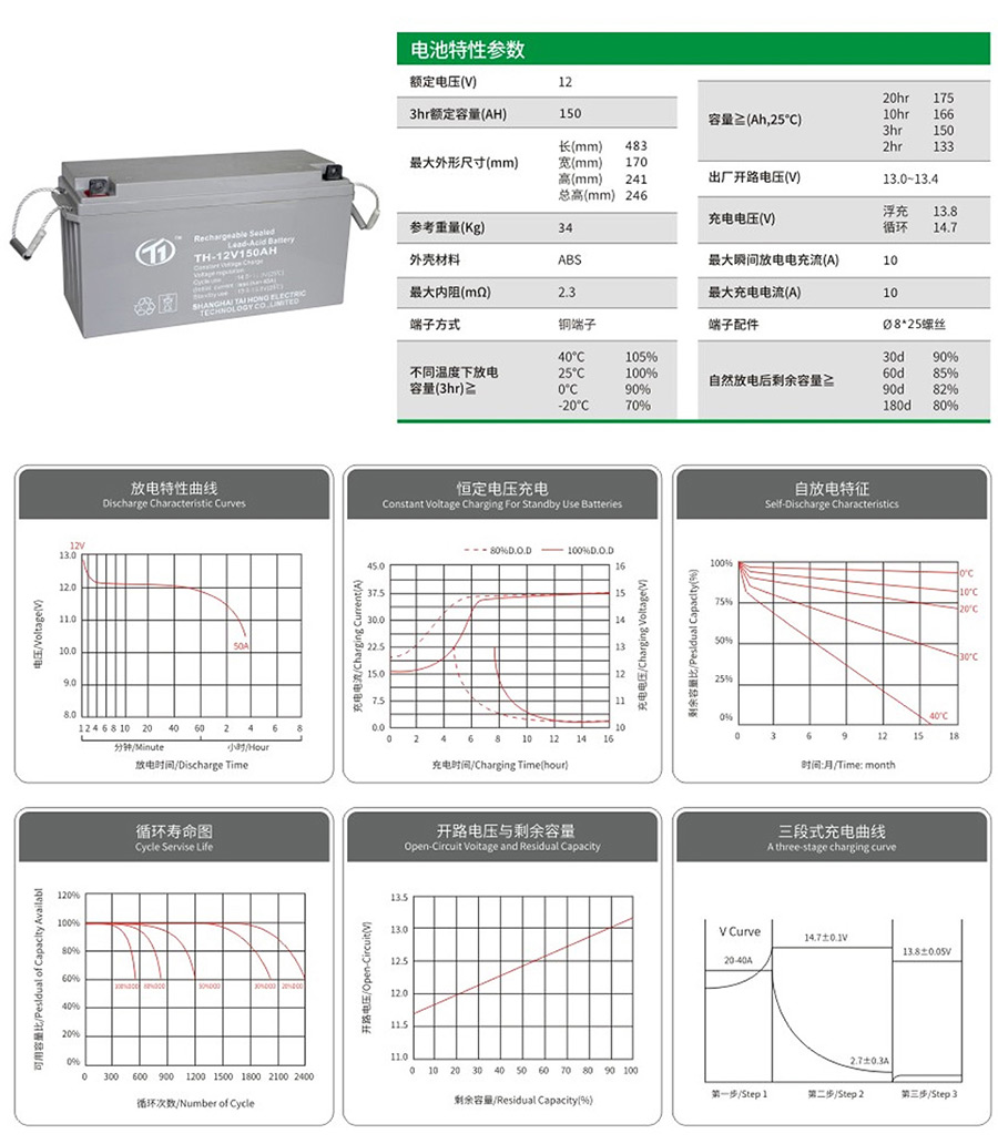 TH-12V150AH固定阀控封铅酸蓄电池